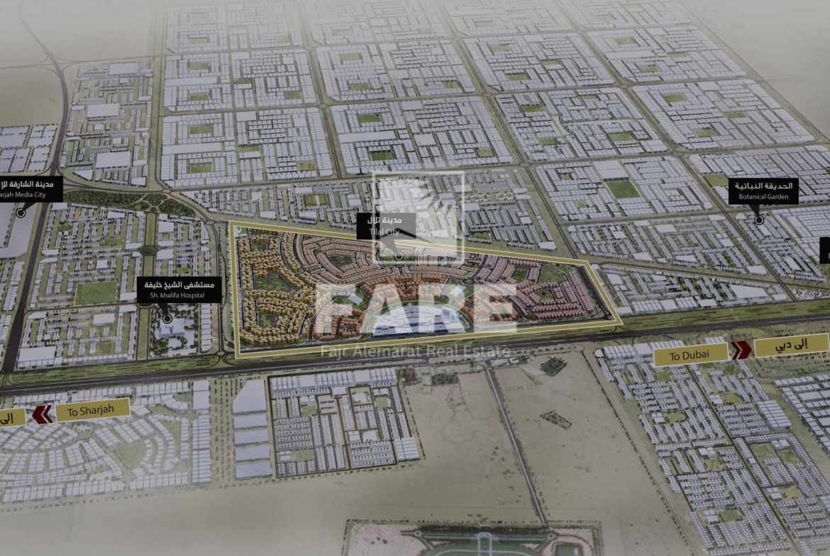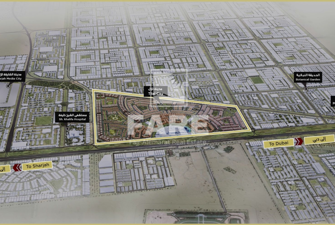 Tilal City is a mixed-use project located in the Emirate of Sharjah on Emirates Road. It is the first of its kind in the emirate, offering the opportunity to purchase land and build properties within the first integrated community city in New Sharjah.
